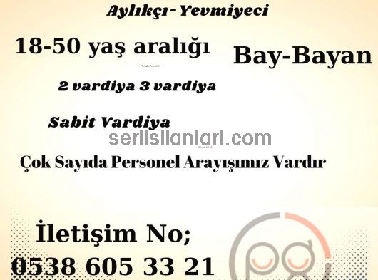 Seriisilanlari.com İnternet seri ilan, sarı sayfalar, iş ve eleman ilanları yayın hizmeti vermektedir. Hiç bir koşulda ilana BAŞVURU almaz. ÜYELİK ve CV BİLGİSİ (cv formu) talep etmez. İş arayanlar aracısız, doğrudan ilan veren kişi veya firma ile muhataptır. İş ilanlarına başvuru; iş adresine, telefon, whatsapp veya e-mail adresine şahsen gerçekleşir. Yayınlanan iş ilanları nın içeriğinden ilan veren sorumludur.